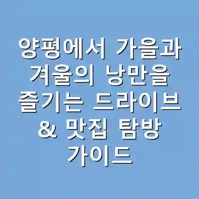 양평은 가을과 겨울에 드라이브와 맛집 탐방을 즐기기 좋은 장소입니다. 두물머리와 북한강 둘레길 같은 아름다운 자연 경관과 함께, 전통 한정식과 지역 특산물로 만든 요리를 경험할 수 있습니다. 준비물을 체크하고 안전한 여행을 즐기시기 바랍니다.