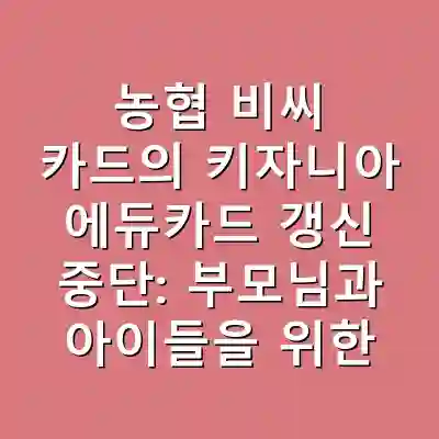 농협 비씨 카드의 키자니아 에듀카드 갱신 중단이 교육적 공백을 초래하고 있습니다. 부모님들은 다양한 대안 교육 프로그램을 통해 자녀에게 필요한 경험과 지식을 제공할 수 있습니다. 적극적인 참여와 소통이 자녀의 성장에 큰 도움이 됨을 잊지 마세요.