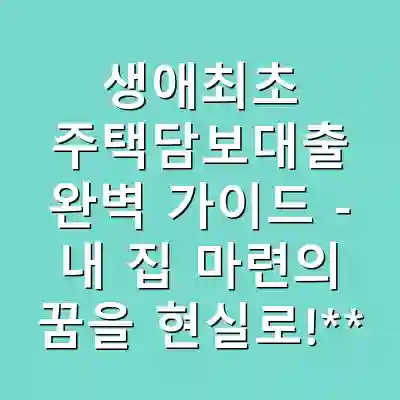 생애최초 주택담보대출 완벽 가이드 – 내 집 마련의 꿈을 현실로!**