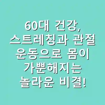 60대에 맞는 건강 관리를 위해서는 근력 운동과 스트레칭이 필수적입니다. 이를 통해 관절을 보호하고, 건강한 노후를 유지할 수 있습니다. 꾸준한 운동과 적절한 영양 관리는 60대 건강의 기본입니다.